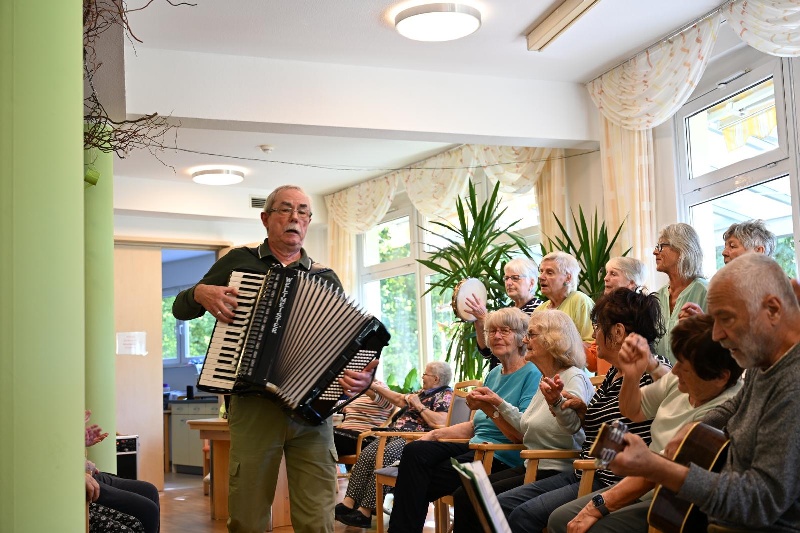 Am 23. Juli 2024 war wieder der Singekreis Fröhlichkeit zu Besuch. Wie immer war es ein unterhaltsamer Vormittag. Es wurde viel mitgesungen sowie geschunkelt und unsere Bewohner*innen hatten viel Spaß. Unser besonderer Dank geht an Frau Christa Karge, welche den Singekreis viele Jahre an der Gitarre begleitet und nun leider den Singekreis verlässt, weil sie in die Nähe der Kinder zieht!